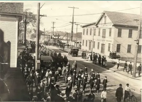 Funeral Procession lead by the O. M. I. Cadets on Gorham Street